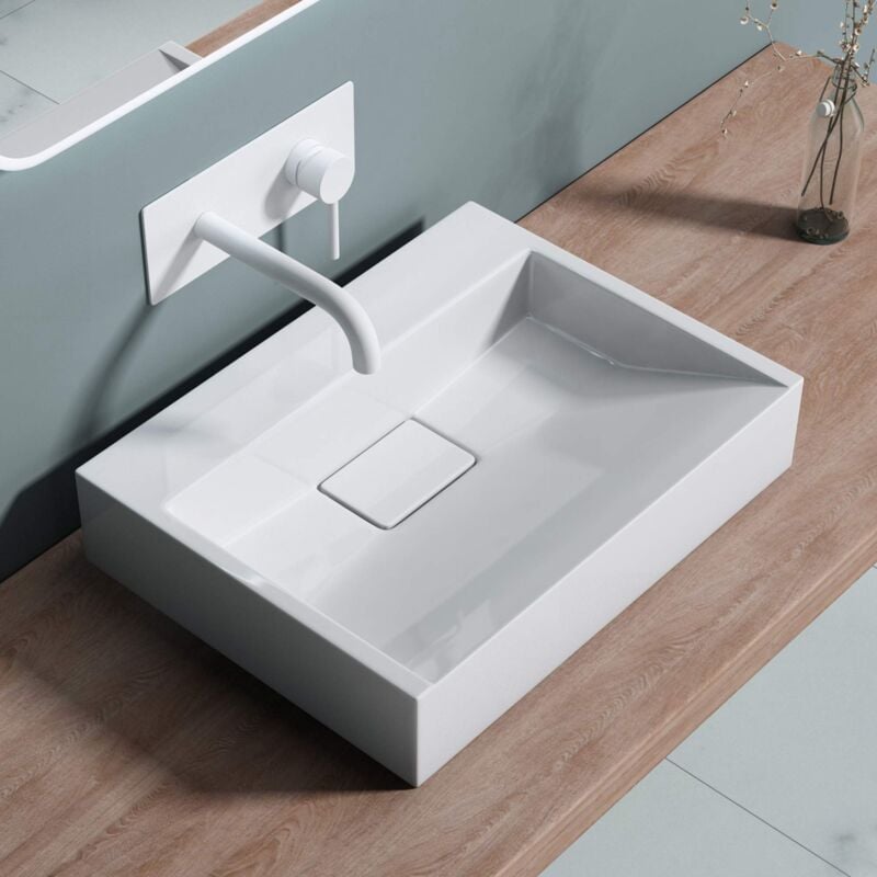 Doporro - Lavabo Suspendu avec Bonde Vasque à Poser Blanc 60x38x11cm Lave Mains Rectangulaire sans Perçage de Robinet Colossum19
