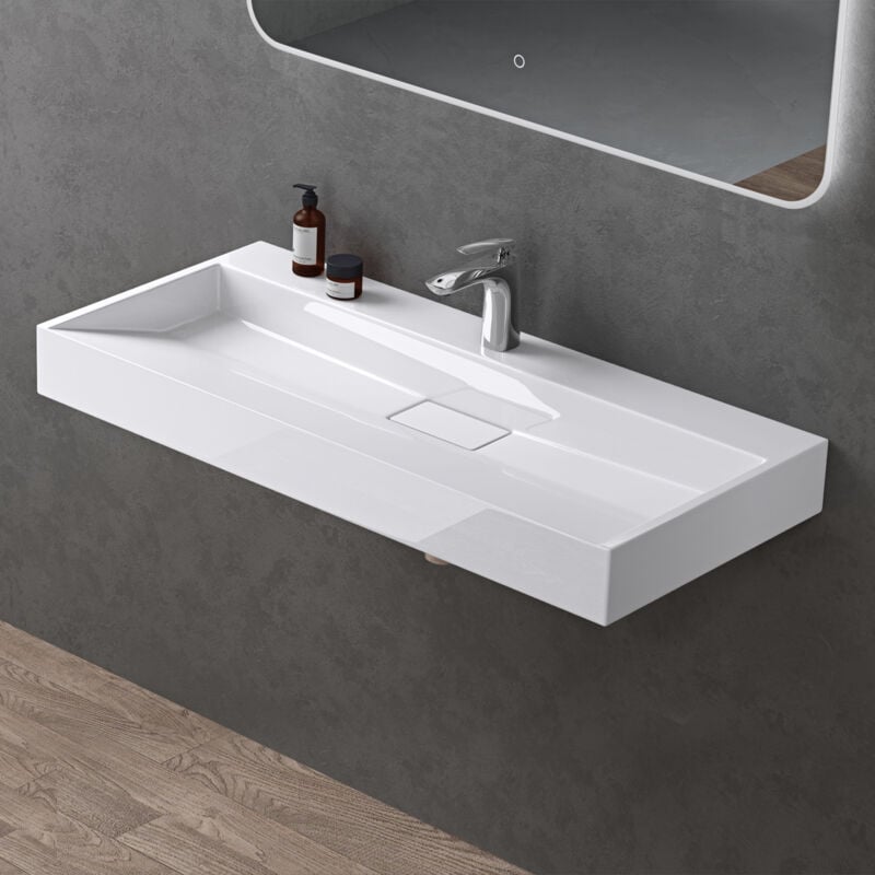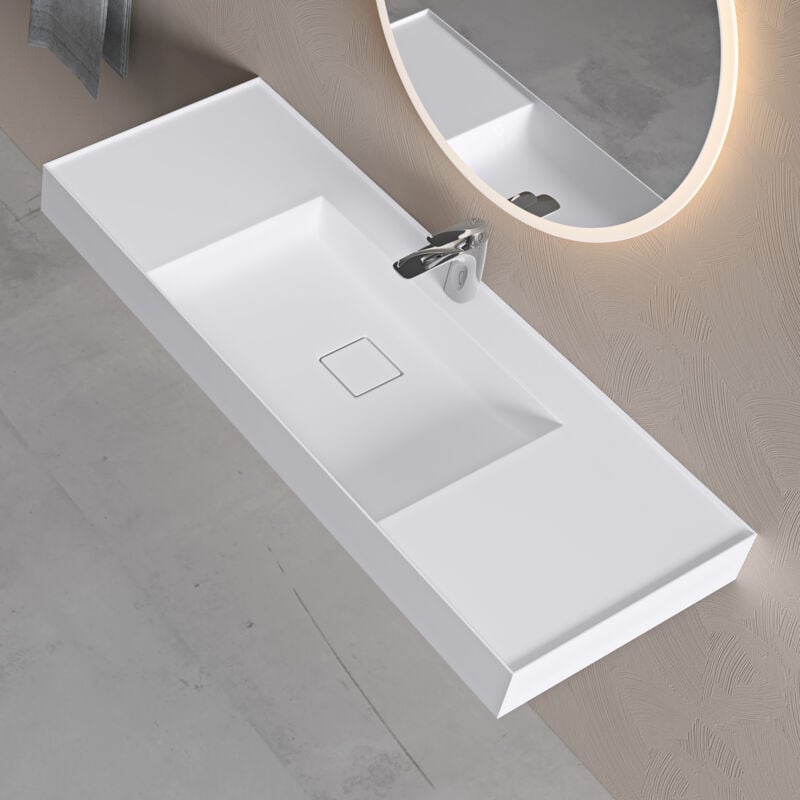 doporro Lavabo Suspendu avec Bonde Vasque à Poser Blanc Mat 100x46x12cm Lave Mains Rectangulaire avec Perçage de Robinet Colossum630