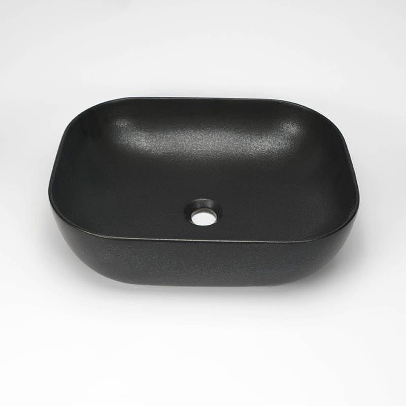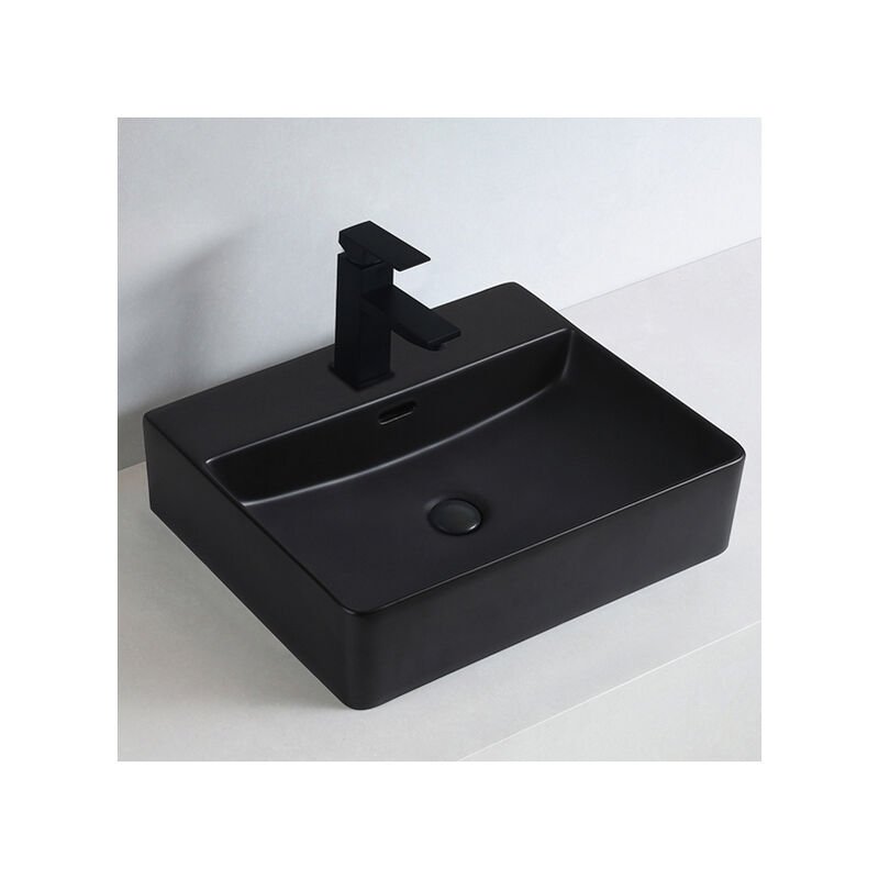 Rue Du Bain – Vasque à poser rectangulaire en céramique noire mate 49x39 cm – Sans trop plein – Compatible bonde clic-clac en laiton chromé