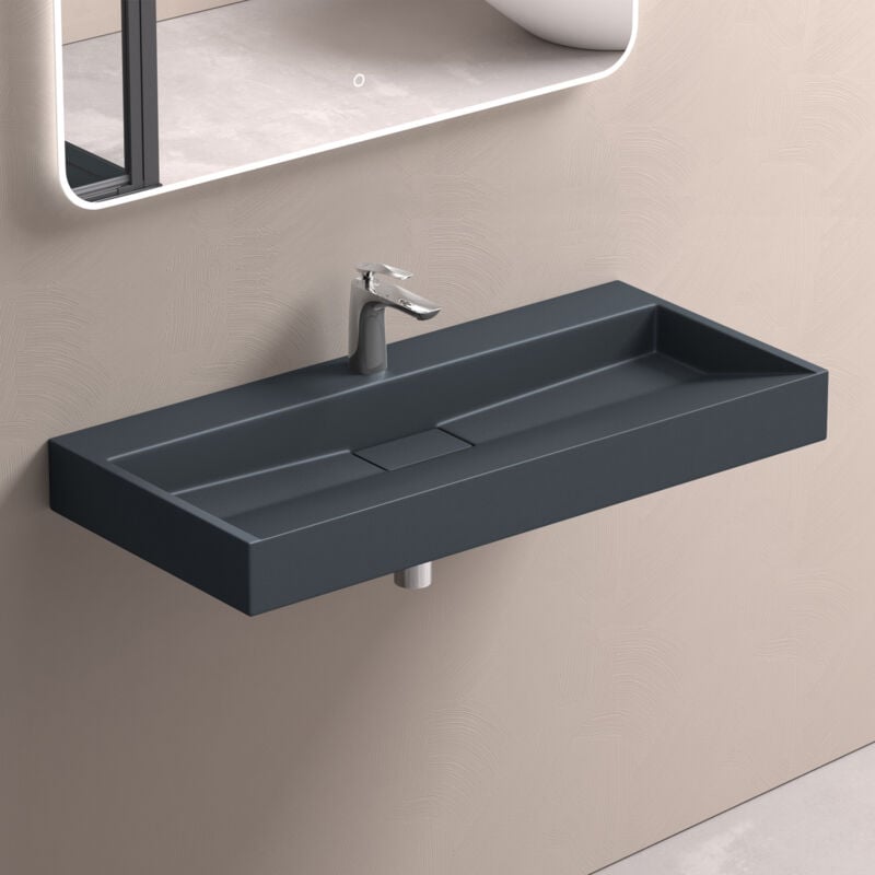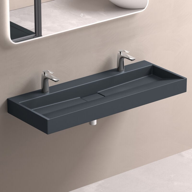 doporro Lavabo Suspendu avec Bonde Vasque à Poser Gris Noir Mat 100x46x11cm Lave Mains Rectangulaire avec Perçage Colossum19