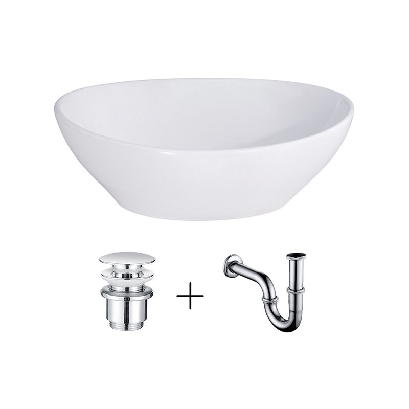 Homelody - Vasque Salle de Bain Lavabo Vasque en Céramique Blanc Vasque à Poser Ovale avec Bonde Siphon Lave Main Haut de Gamme