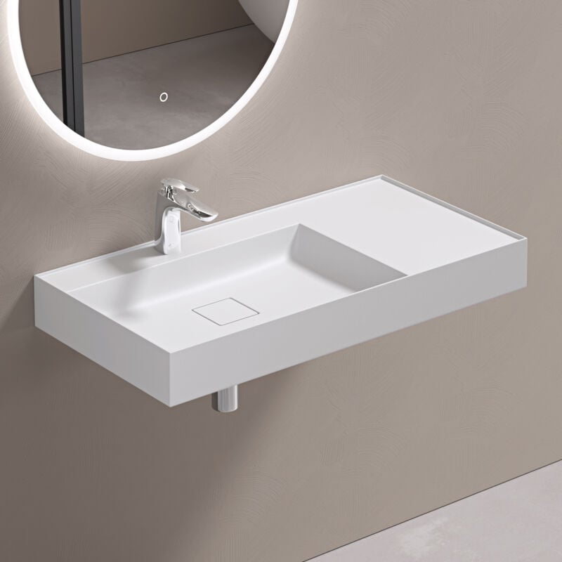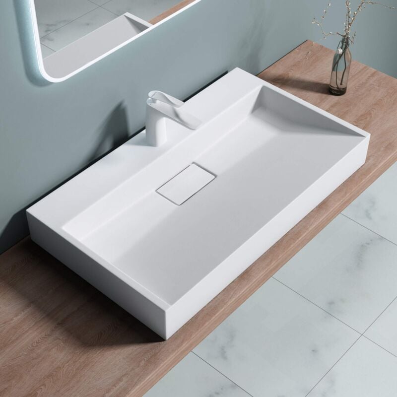 doporro Lavabo Suspendu avec Bonde Vasque à Poser Blanc Mat 90x46x11cm Lave Mains Rectangulaire avec Perçage de Robinet Colossum19