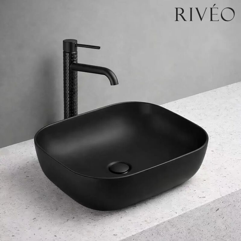 Riveo-Vasque à poser rectangulaire noire 505 x 405 x 145 mm avec bonde noire