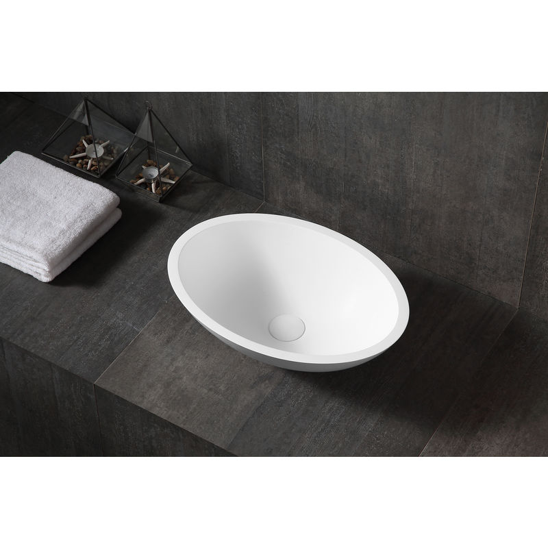 Bernstein – Vasque à poser en fonte minérale blanche mat 54 x 34 x 10,5 cm – Surface antibactérienne – Bonde Pop-Up incluse - O-540