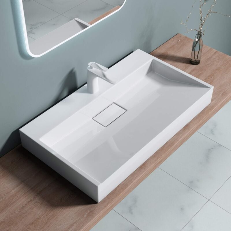 Doporro - Lavabo Suspendu avec Bonde Vasque à Poser Blanc 90x46x11cm Lave Mains Rectangulaire sans Perçage de Robinet Colossum19