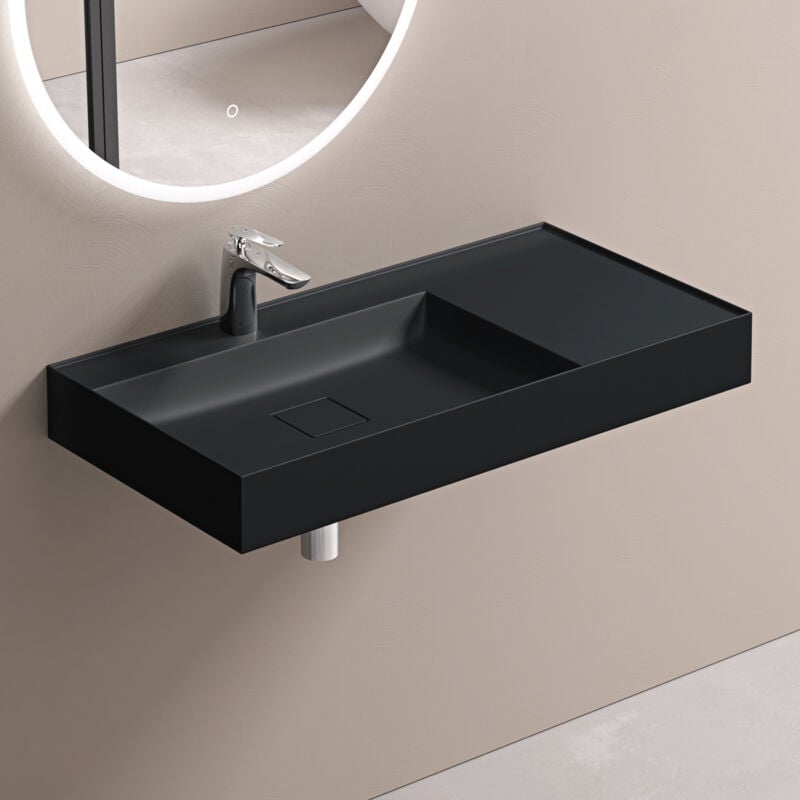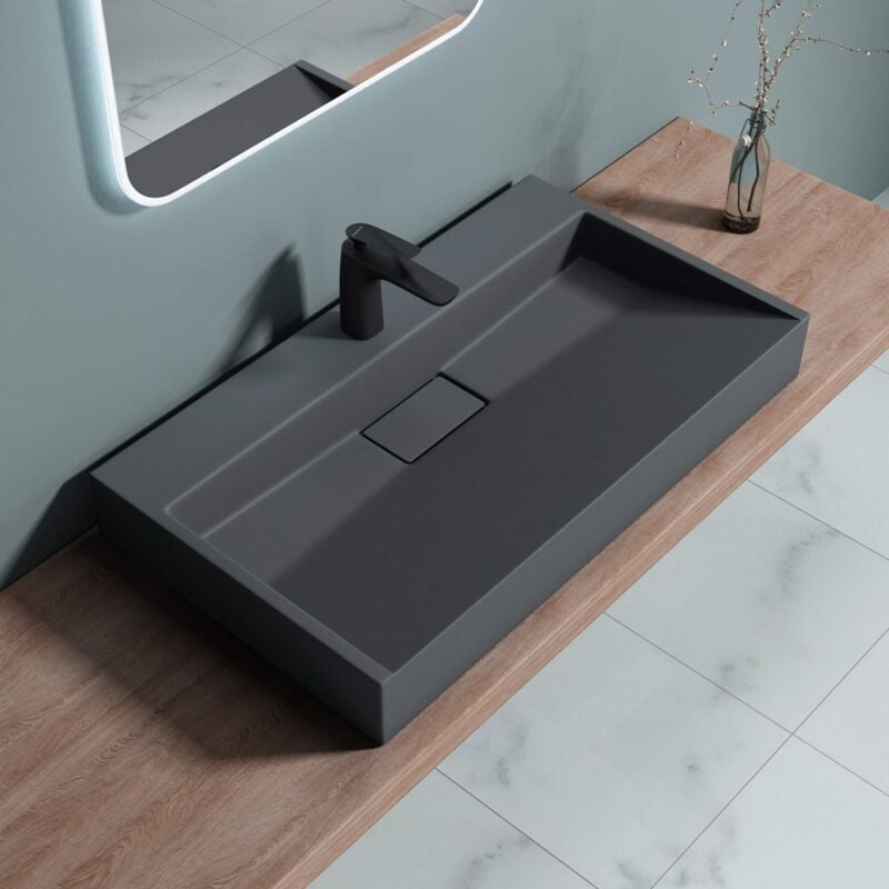 Doporro - Lavabo Suspendu avec Bonde Vasque à Poser Gris Noir Mat 90x46x11cm Lave Mains Rectangulaire avec Perçage de Robinet Colossum19