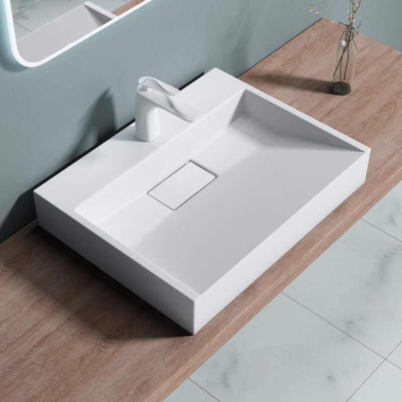 Bernstein - Vasque rectangulaire à poser moderne en fonte minérale salle de bain, bonde non fournie - TWA112 - largeur et couleur au choix Blanc mat,