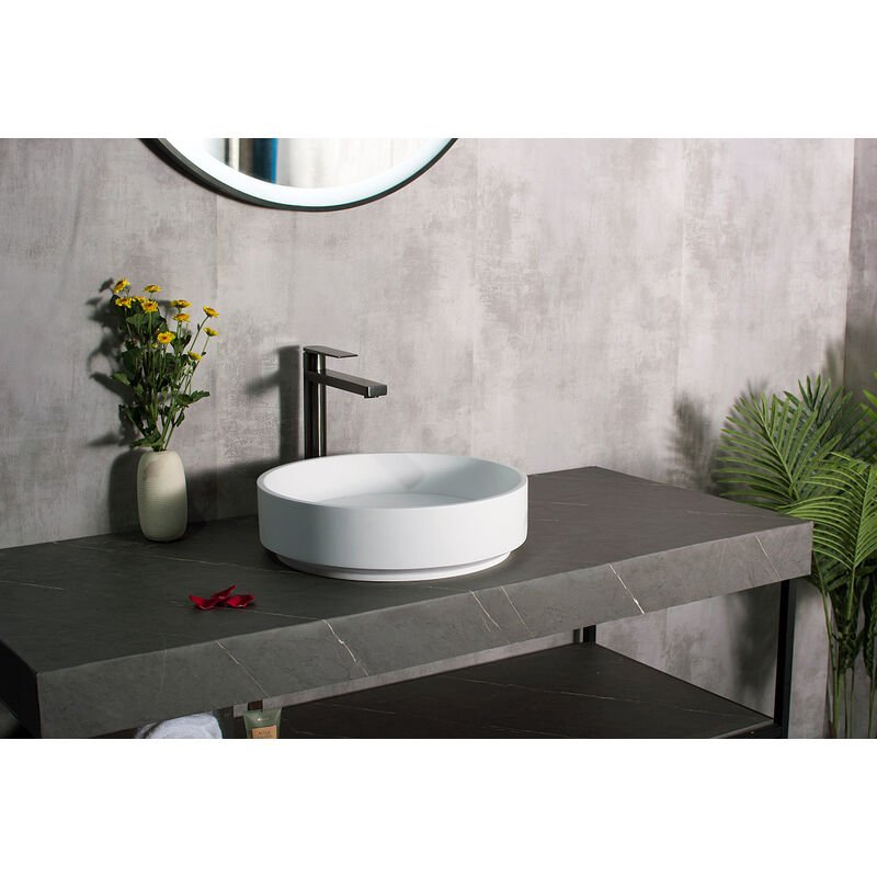 Bernstein - Vasque Lavabo rond design en fonte minérale à poser avec bonde NT2430 - 42x42x11cm - couleur au choix Blanc mat
