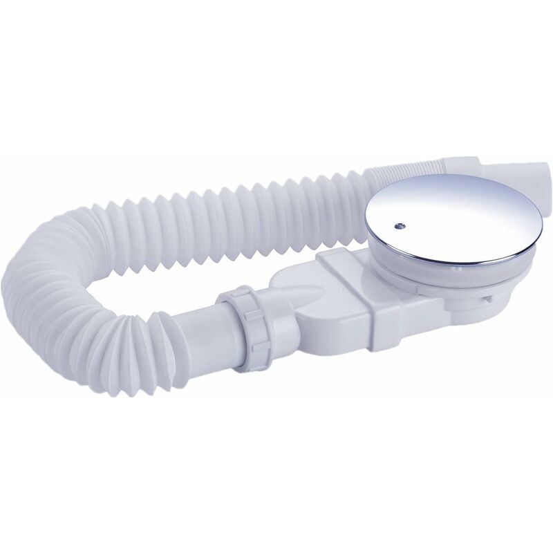 Bonde à panier avec commande à câble 90mm, trop-plein et siphon extra-plat blanc Wirquin