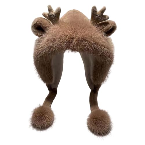 Bonnet De Noel Femme Chic- Beret Carnaval Hiver Trappeur avec Pompon en Fausse Maille Douce à Motif Cerf pour Les Oreilles par Temps Froid 2026
