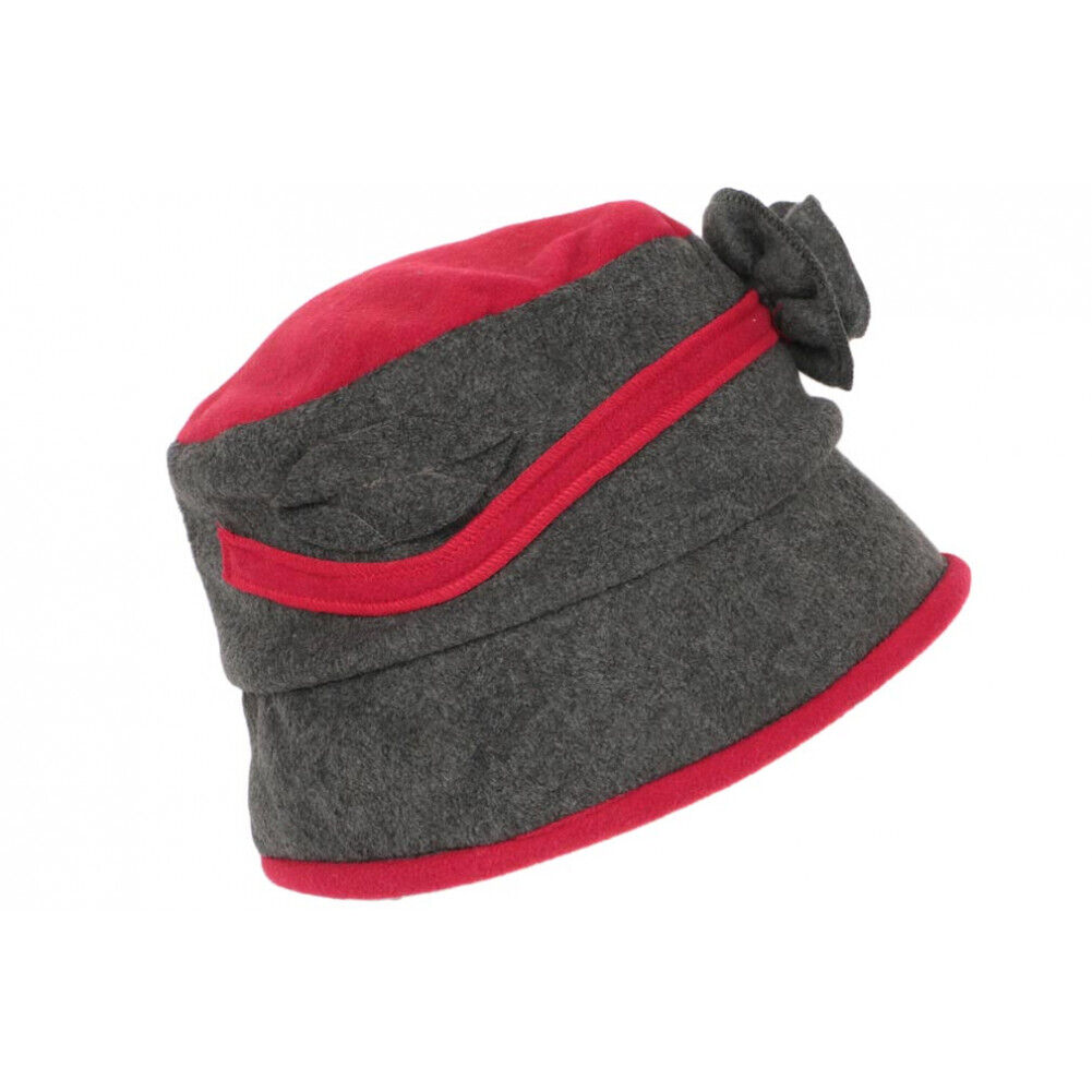 Beret Bonnet Femme Rouge et Anthracite Chapeau Polaire Hiver Monia-Taille unique