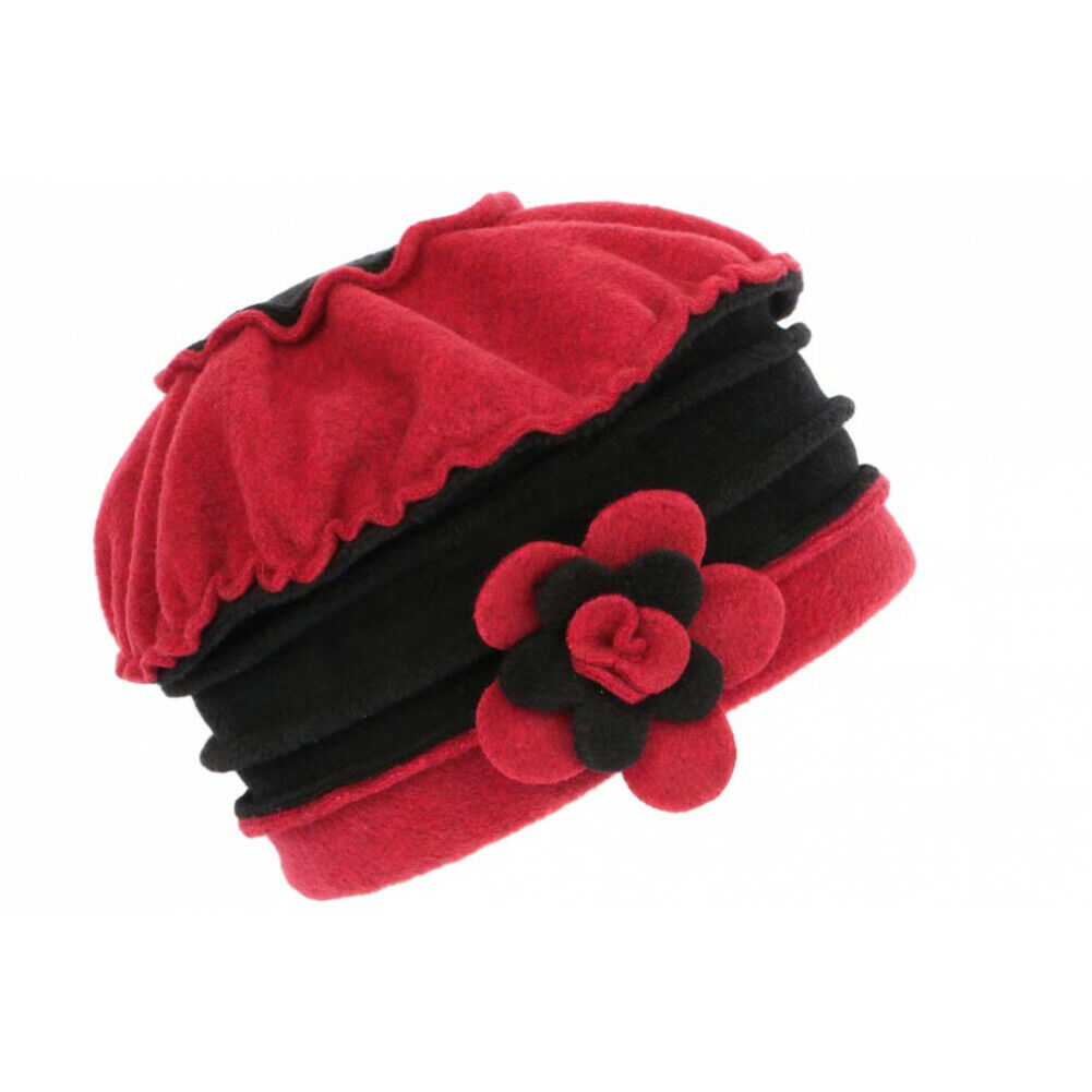 Beret Bonnet Femme Rouge et Noir Chapeau Polaire Déperlante Hiver Lylya-Taille