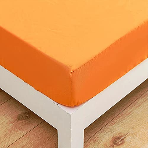 Mateju Drap Housse en Microfibre Couleur Unie pour Matelas 1/2 Personnes, Polyester Confortable Résistant aux Rides Protège Matelas avec Elastique Bonnet (Orange,90x200x27cm)