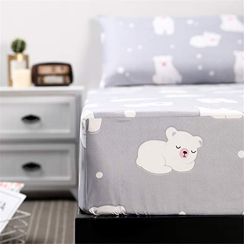 Treer Drap Housse en Microfibre pour Matelas 1/2 Personnes, Imprimé de Mignon Nordique Stretch Protège Matelas Drap de Litavec Bonnet 25cm,Résistant aux Rides (120x200+25cm,Ours Polaire)
