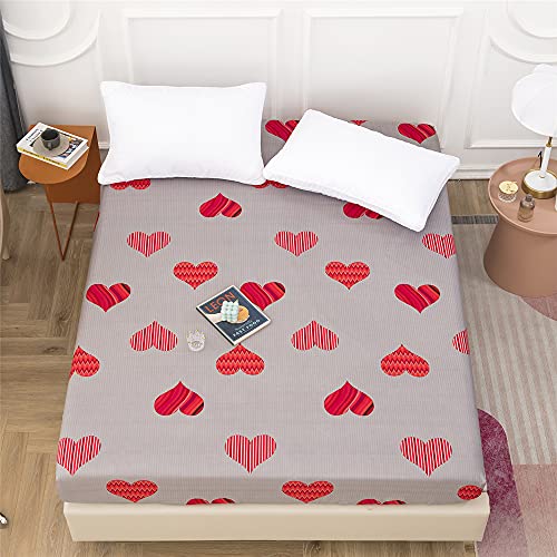 Treer Drap Housse en Microfibre avec Bonnet pour Matelas Épaispour 1/2 Personnes, Imprimé de Mode Moderne Drap Housse, Résistant aux Rides Stretch Protège Matelas (Coeur Rouge,90x200+25cm)