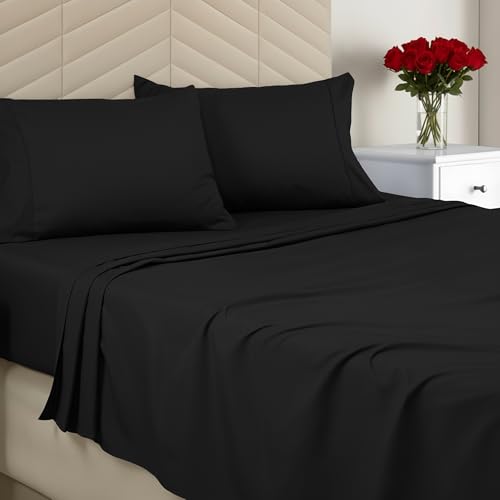 Utopia Bedding Parure de lit Double en Microfibre brossée Douce, Comprend 1 Drap-Housse, 1 Drap Plat, 2 taies d'oreiller, Bonnet Profond (Noir)
