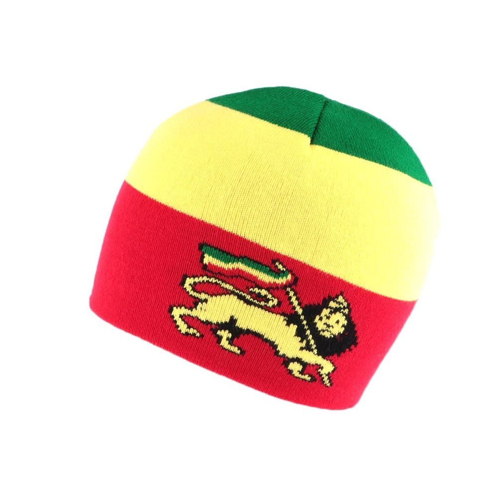 Bonnet Court rouge Jamaique avec Lion Nyls Création-Taille unique