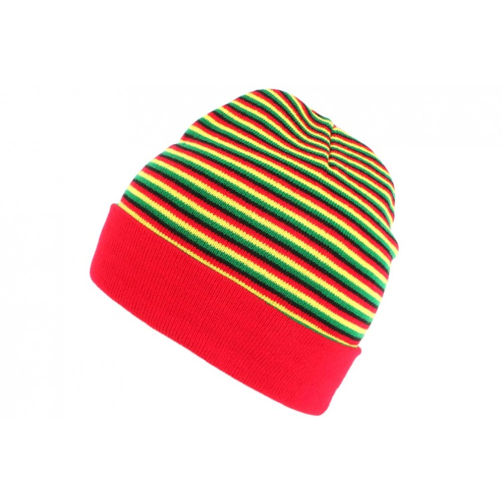 Bonnet court rouge jaune et vert rasta en laine Dutty-Taille unique