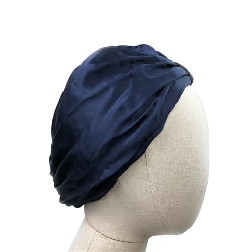 BFLCWSTD Bonnet Soie Cheveux Nuit Chapeau de Sommeil en Soie Pure for Femmes, Bonnet Nuit Doux, Cheveux, Couvre-tête Confortable, Large Bande élastique, Casquette Perte(Deep Blue)