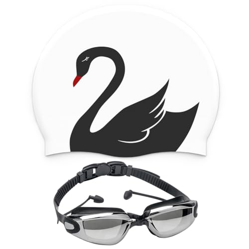 2 PCS Bonnets Dessin animé de Bain Mignons Enfants,Lunettes de Natation,Bonnet de Bain en Silicone,Lunette Piscine Elliptique,Bean Bonnet Piscine,pour Garçon Fille Cheveux Long Courts (Cygne)