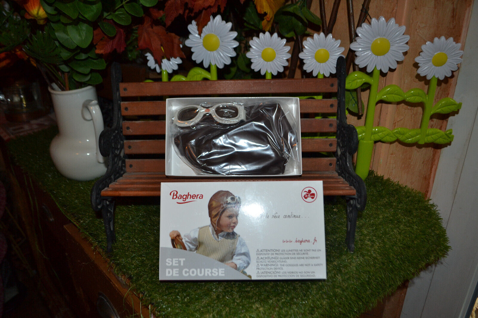 BAGHERA set de course bonnet vintage et lunette que portaient les pilotes an 20