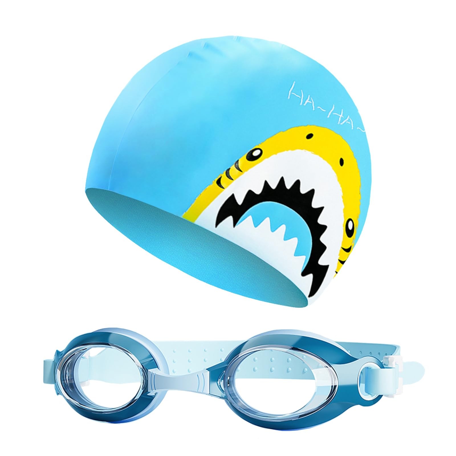 OhMill 2pcs Lunettes de Natation Anti-Buée et Bonnet de Bain pour Enfants Lunettes de Bain Protection Étanches avec Bouchons d'Oreille Lunette de Plongée Anti-UV pour Garçon Fille 3-16 Ans