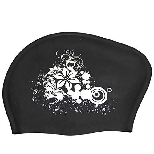 Bonnet Piscine Femme One Size Bonnet Noir De Marin Running Bain Silicone Dreadlocks Cheveux Long Casquette sans Visière Douche Imprimé Natation Chauffant Extra Large Longe Bonnets Tissu Adulte Satin
