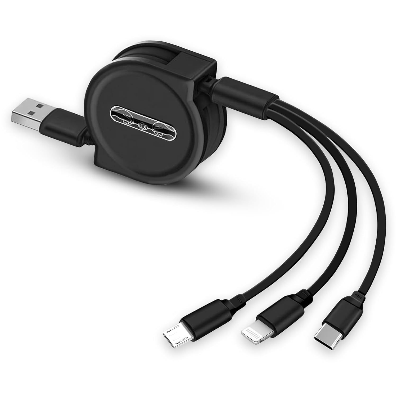 Câble Multi Usb Rétractable Câble Multi Usb 3A Cable Retractable 3 En 1 Charge Rapide,Câble Chargeur Universel Multi Embout Avec Usb C,Micro Usb,Pour Mac-Book,Ga-Laxy S24 S23,Hua-Wei,Phone