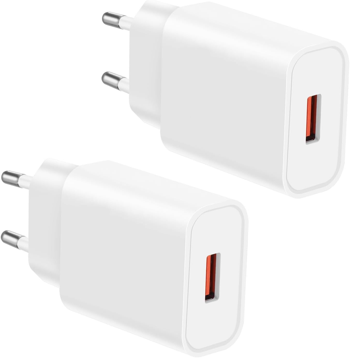 2-Pack Quick Charger QC3.0 USB Socket Compatible with Samsung Galaxy, Xiaomi Redmi, Oppo, Huawei, Tablet, E-Book Reader, Mobile Battery, Mobile Phone, Router (18W, White)