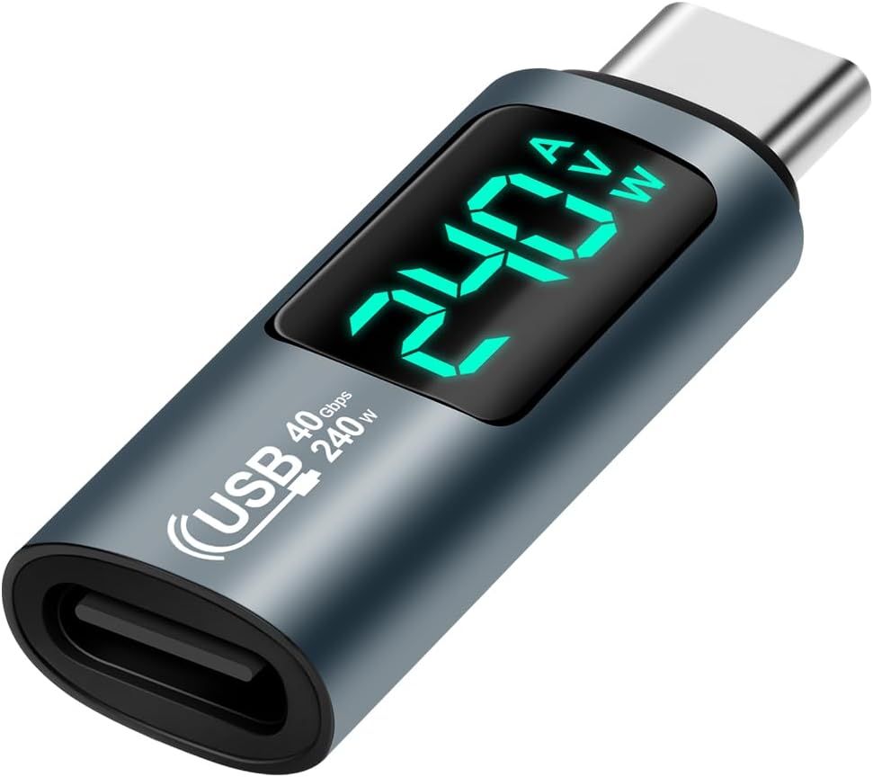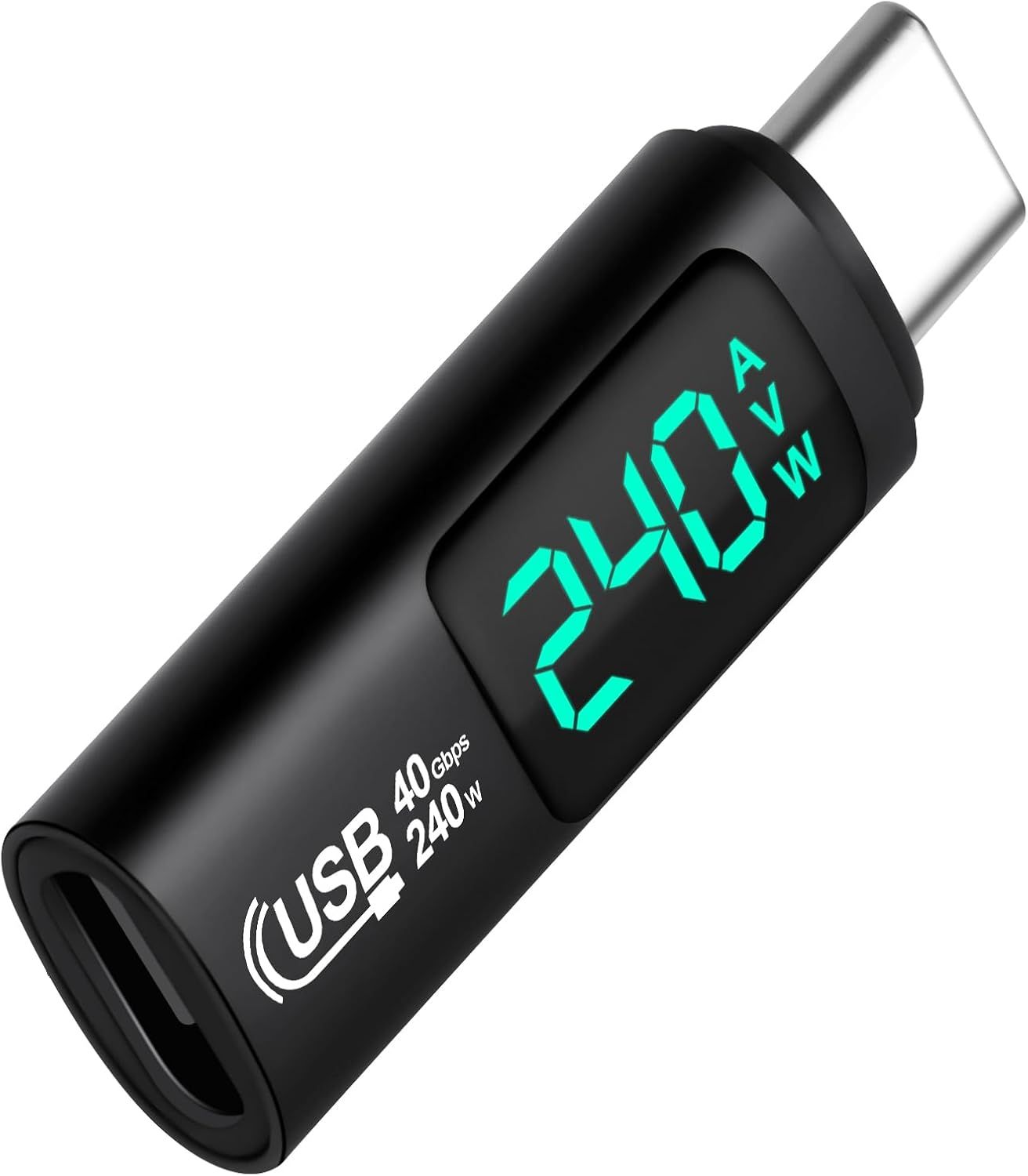 TYE-Adaptateur USB C vers USB C avec Affichage numérique Intelligent, 240W pour Charge Rapide, Compatible avec Mac-Book/i-Phone 15/i-Pad/Galaxy/Xperia/Pixel