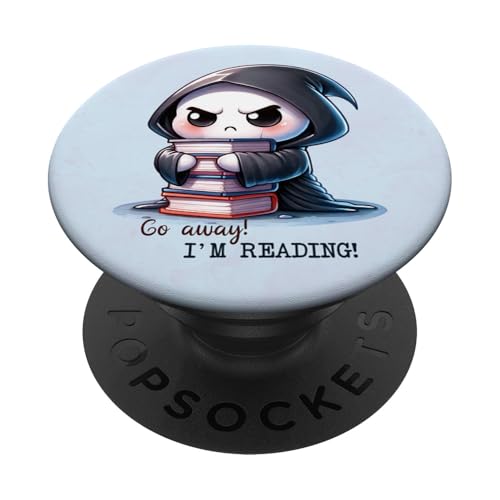 Bookish Bookworm Book Lover for Readers PopSocket Phone Grip Stand Noir avec Squelette Kawaii et Livres pour la Lecture Nationale et Journée Mondiale du Livre, Remplaçable, Silicone, Adhésif