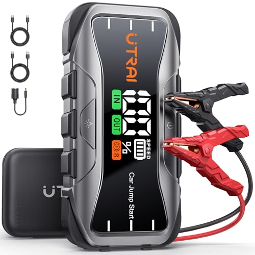 UTRAI 8000A Booster Batterie Voiture, 27000mAh 65W Charge Rapide Démarreur Batterie Voiture avec 600 Lumens LED (4 Modes), démarrage forcé, Sortie CC 160W, Jump Starter pour Tous Essence/12L Diesel