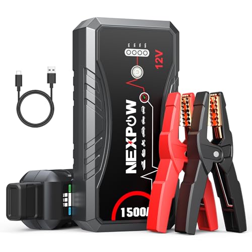 NEXPOW Booster Batterie Voiture 1500A Portable Jump Starter (Jusqu'à 7.0L Essence ou 6.5L Gazole) Booster Batterie Démarrage de Voiture 12 V avec Pinces de Sûreté Intelligentes Lampe à LED