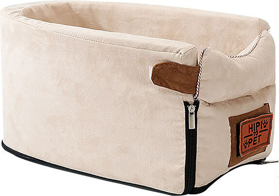 Siège auto pour chien Pet Booster Seat Accoudoir Porte-voiture respirant avec sangles Panier de chaise de sécurité, Beige