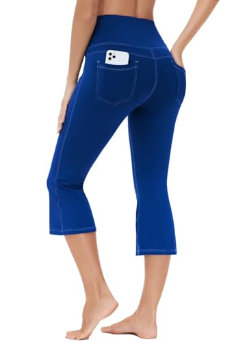 BAYGE Pantalon de yoga bootcut pour femme, taille haute, imperméable, opaque, contrôle du ventre, coupe ajustée, legging, pantalon évasé pour le sport et le fitness, avec poches, S