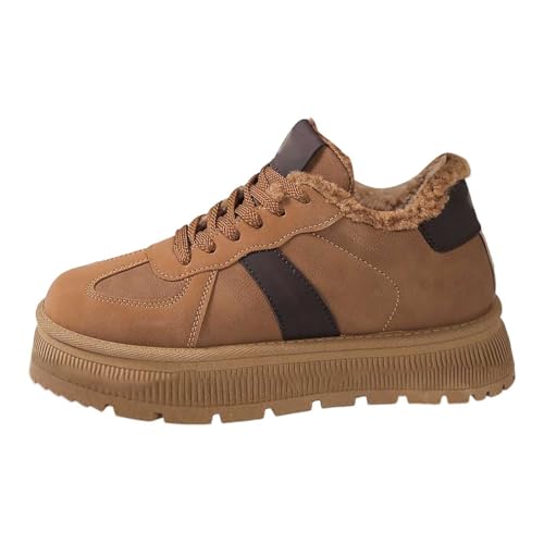 IYVW 8528 Bottes de Neige Femme Homme, Chaussures de Sports Randonnée Hiver en Suède Bottines Fourrées Baskets Fourrure Boots Après Ski pour Marche Nordique Marron 44 EU