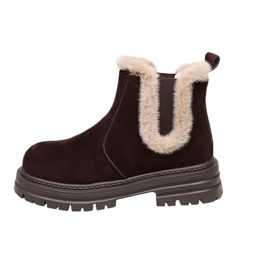 Bottine Femme Boots Fourrées Femme Chaussure Ski 39 Doublure Botte Fourré Mi Mollet Bottes Imperméables Botte Pluie Bottines Chaudes Bottines Fourrees Épaisses Bottes Marron Hiver Imperméable Boots