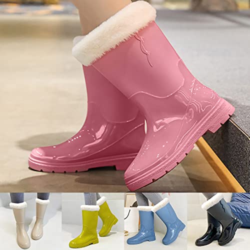 Bottes De Neige Femme Boots Femme Chaussure De Ski 35 Polaire Mi Mollet Botte Fourré Fourrées Caoutchouc Bottine Chaude Épaisses Haute Bottines Randonnée Pluie Chaussures Doublure Women Durable Hiver