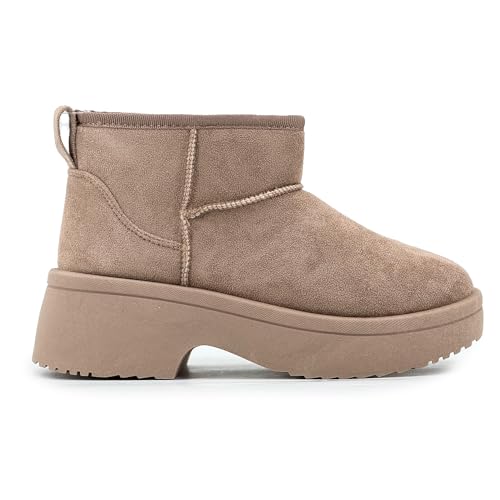 JOMIX Bottines Courtes Femme Hiver Boots Courtes Fourrées à Enfiler Semelle Plateforme Antidérapante Tige Courte en Suédine Ankle Boots Femme Chaudes et Confortables WSB255313 Beige 37