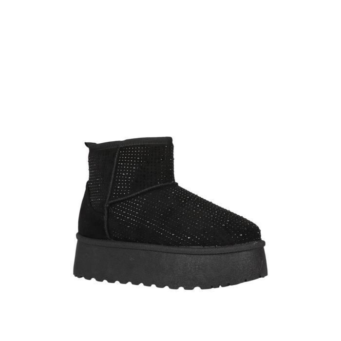 Boots fourrées en suédine à strass.Présence dune languette à larrière.Dotées dune semelle plateforme crantée. pour femme -