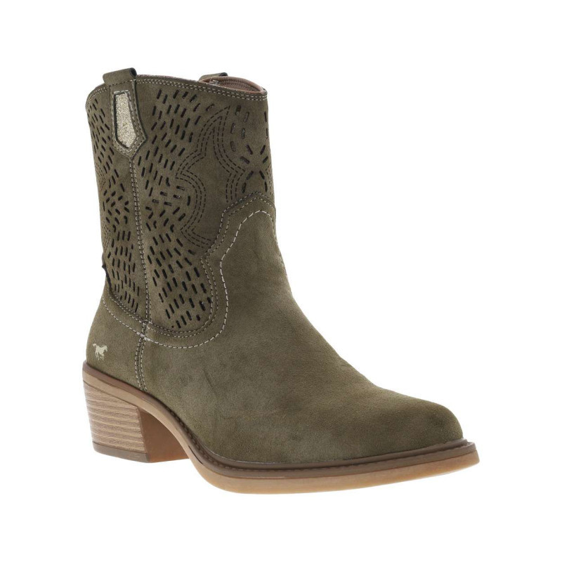 ORANDESIGNE Bottes D'été Femme Bottes Western Cowboy en Daim Boho Chic Motif Perforé Boots A Kaki 35 EU