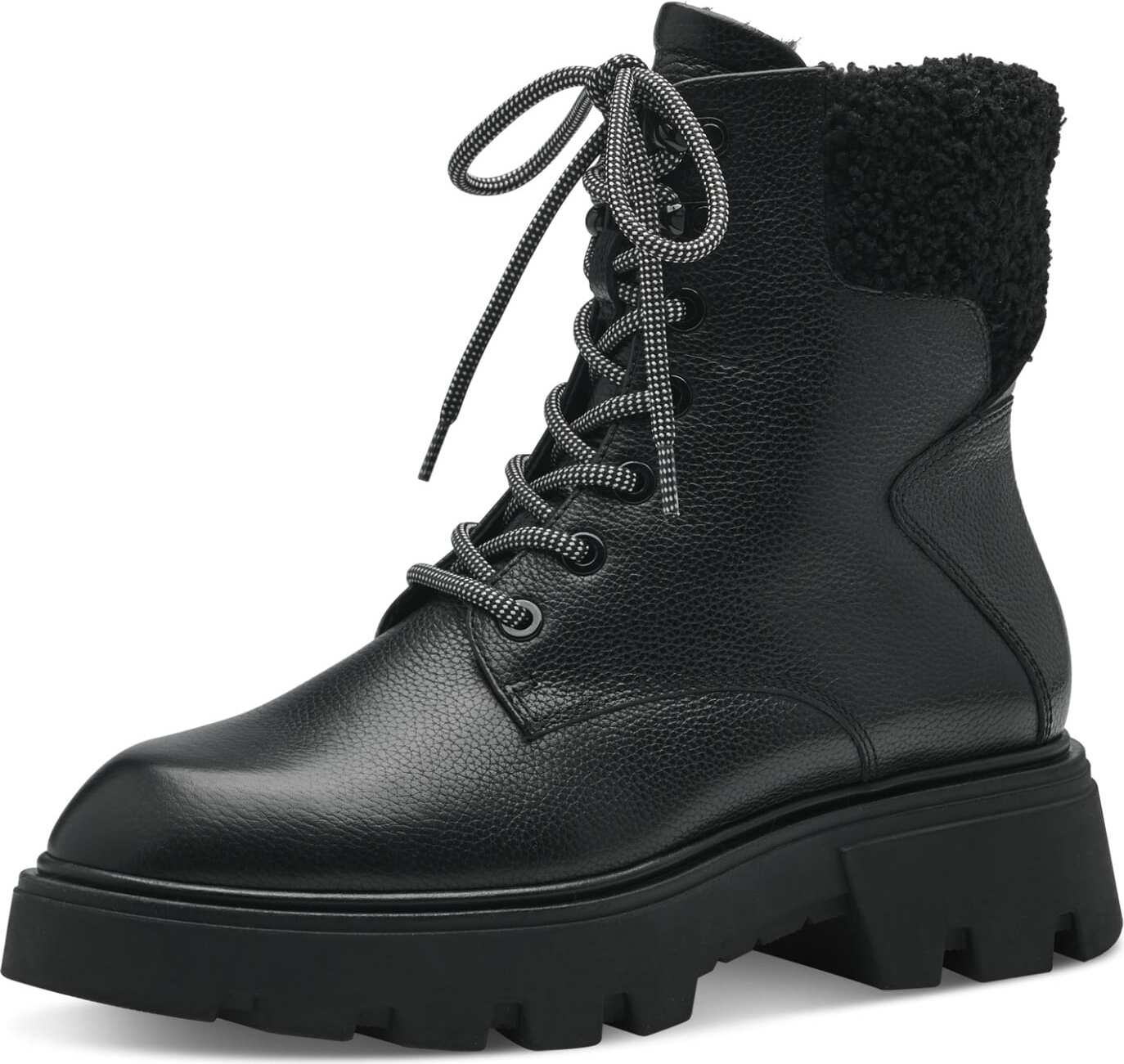 Tamaris Combat Boots, bottines pour femmes,chaudement fourrées,bottes,bootee,booties,demi-bottes,bottes courtes,Black Leather,37 EU