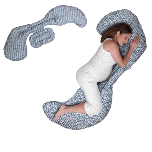 BOPPY Coussin de grossesse gris modulaire à soutien total du corps, coussin confortable, assure le soutien du corps, favorise la position latérale, lavable en machine - Bleu Marine