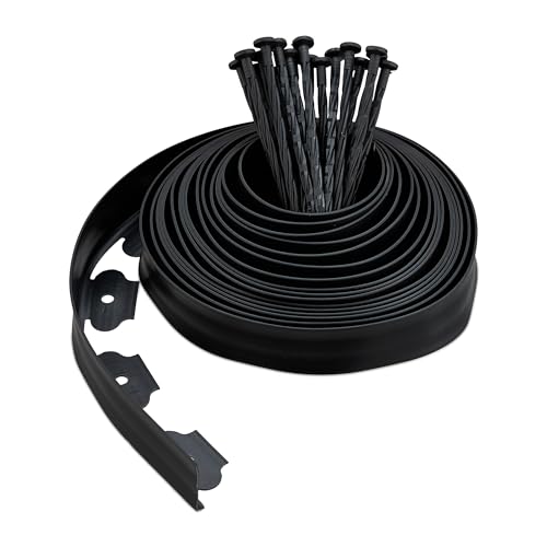 Relaxdays Bordure de Jardin avec ancrage, 10 m, pour délimiter parterres et chemins, Bande Flexible en Plastique, Noir