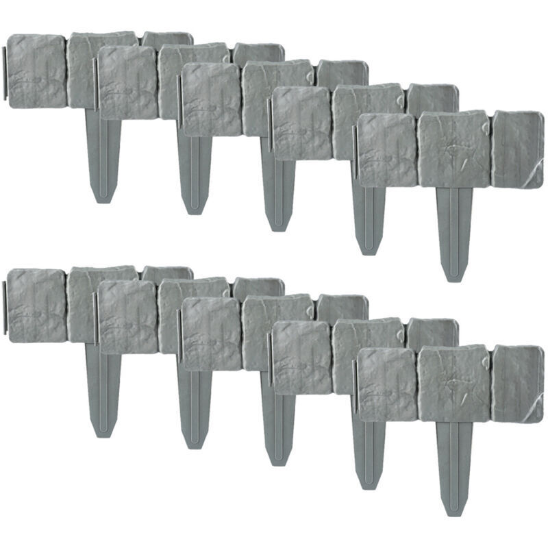 Clôture de Jardin en Plastique Effet Pierre - Bordure de Pelouse et Parterre - Lot de 5 Panneaux Décoratifs