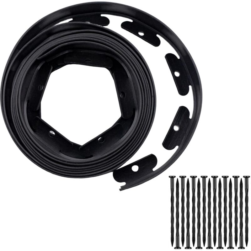 Bordure de pelouse en plastique, 5 m x 4 cm, flexible, noire, avec 15 clous en plastique, pour jardin, pelouse, parterre, pierre, gravier