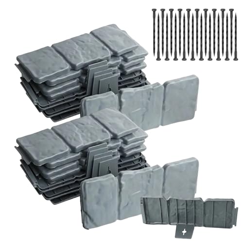 Gogogmee Bordure de Pelouse Plastique Haute X Longue Clôture de Jardin Décorative Portable Bordure Paysagère Imitation Pierre pour Pelouse et Massifs