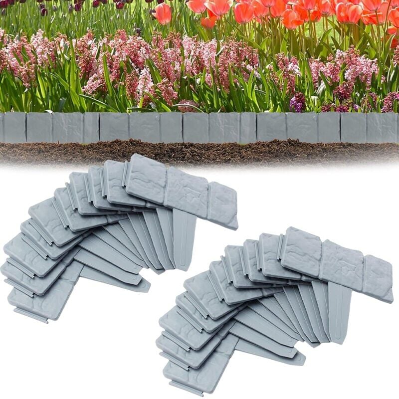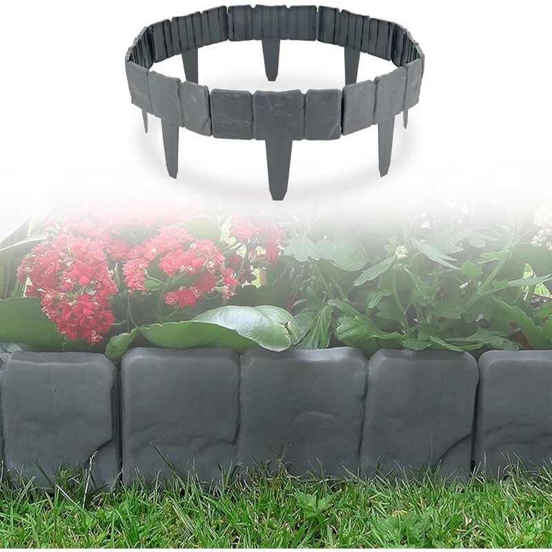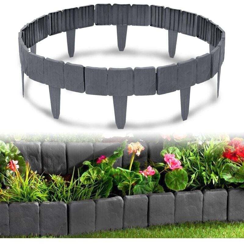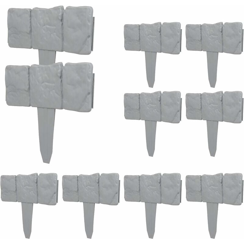 10 Pcs Clôture Bordure Gris Palissade Clôture Effet Pierre PelouseBordure pour Jardin Pelouse