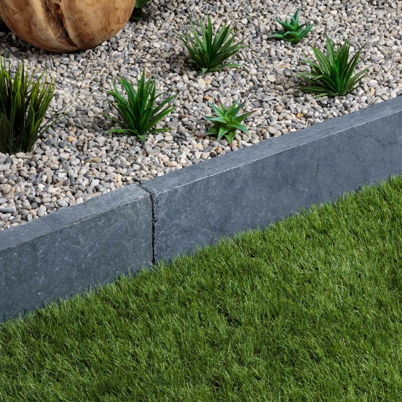 Bordure de jardin en ardoise naturelle 100x10x6 cm – Couleur gris – Pierre naturelle pour délimitation d'espaces extérieurs