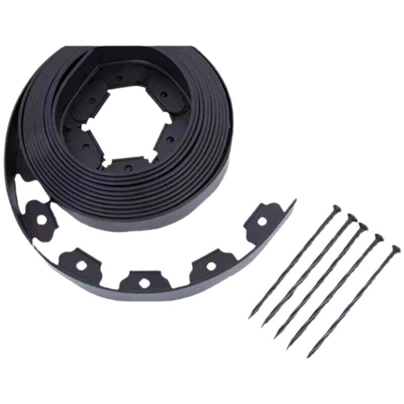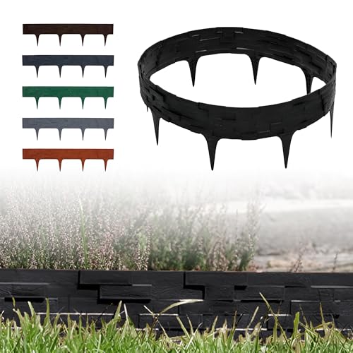 FIVMEN Bordure de pelouse en plastique 5 m avec clous de sol - Motif imitation pierre naturelle - Bordure de parterre - Bordure de tonte - Palissade de jardin - Décoration de jardin - Anthracite
